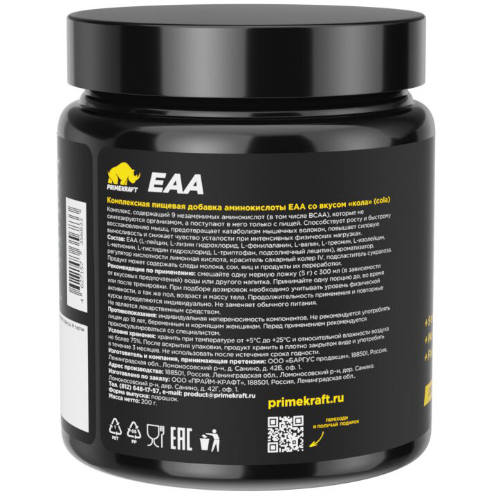 Аминокислоты ЕАА PRIMEKRAFT, Кола, 200 г / Комплекс аминокислот EAA 1 052 ₽