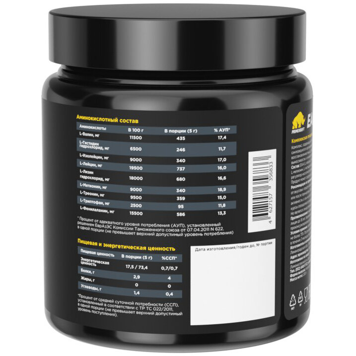 Комплекс незаменимых аминокислот Prime Kraft EAA - 200 г, кола информация: