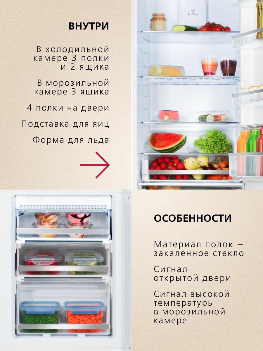 Встраиваемый холодильник Hansa BK347.3NF, 281 л, No Frost в морозильной камере, 40 дБ, автономное сохранение холода 18 часов, материал полок - стекло, А+, белый информация: