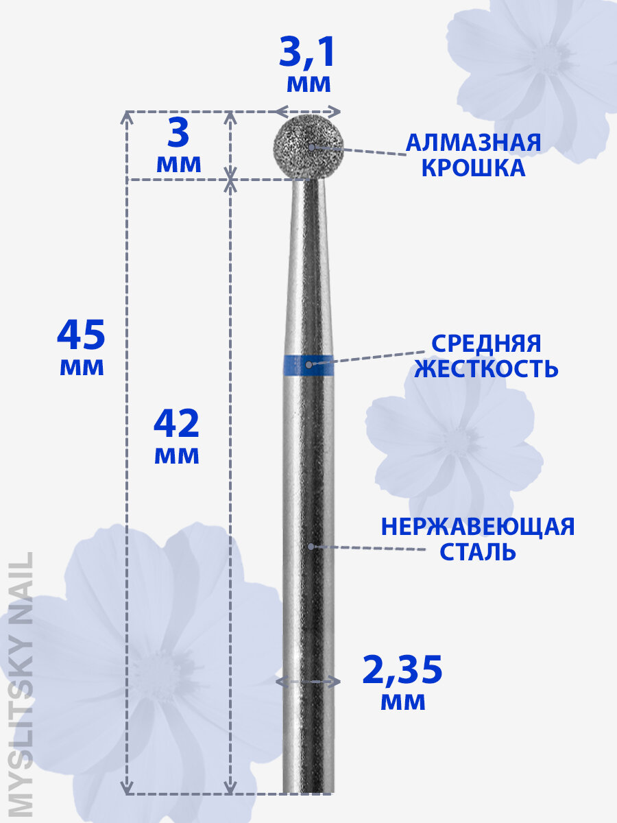 Фреза для маникюра и педикюра алмазная ВладМиВа для кутикулы 806 104 001 524 031 Средняя шар (упаковка 5 шт) информация: