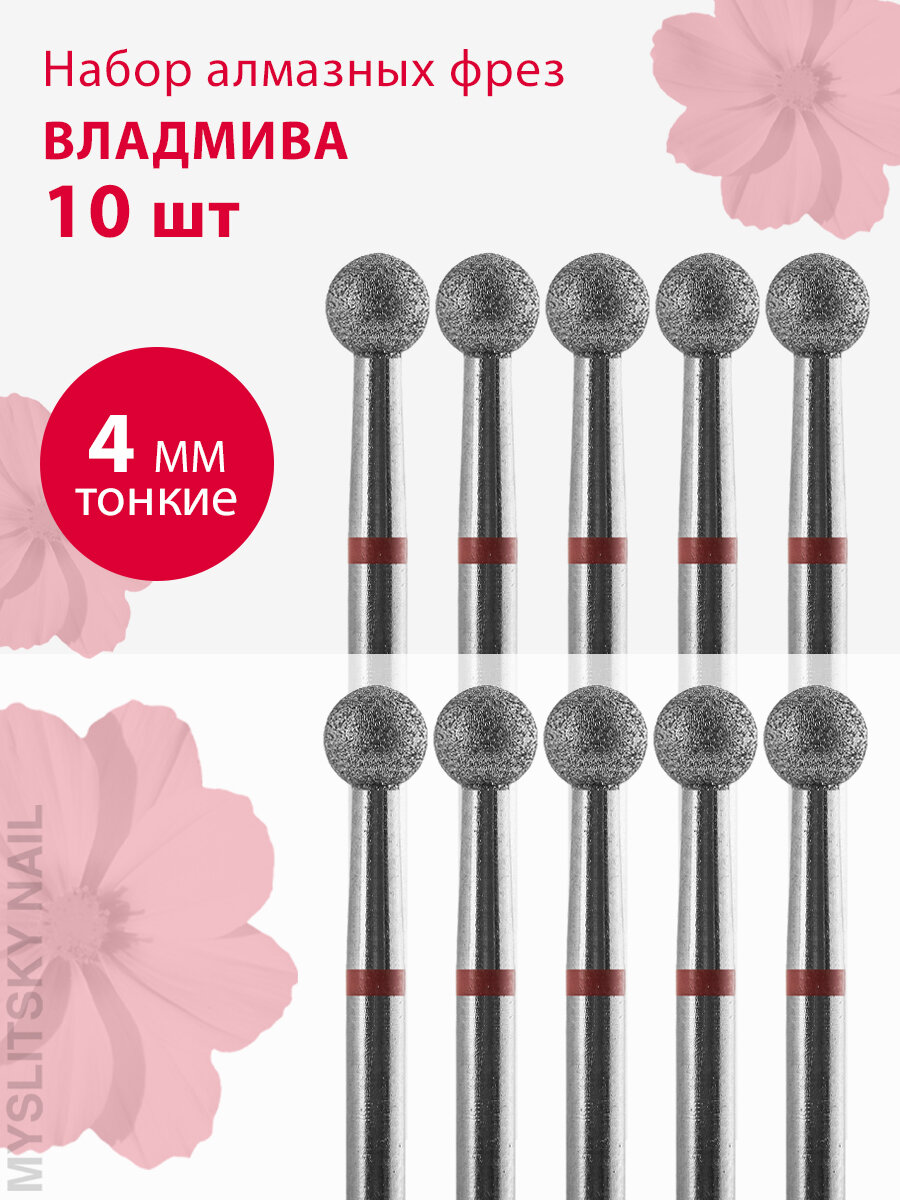Фреза для маникюра и педикюра алмазная ВладМиВа для кутикулы 806 104 001 514 040 Тонкая шар (упаковка 10 шт) информация: