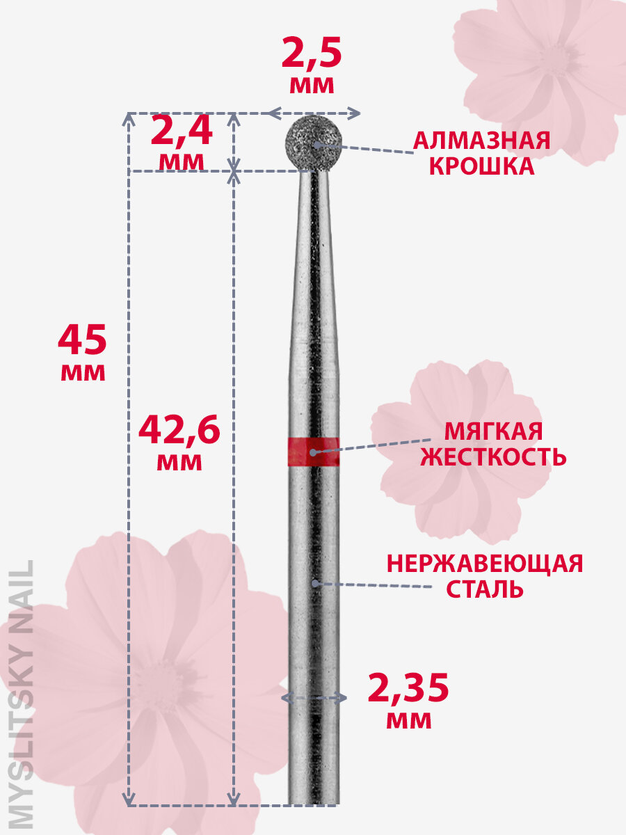Фреза для маникюра и педикюра алмазная ВладМиВа для кутикулы 806 104 001 514 025 Тонкая шар (упаковка 10 шт) информация:
