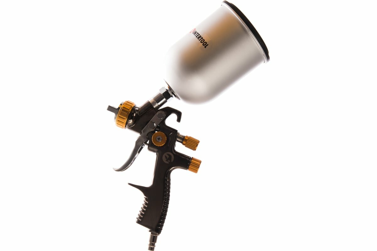 10 цен на INTERTOOL Краскопульт пневматический LVLP BRONZE , форсунка 1.8мм, бачок 600мл, 1.5бар PT-0135