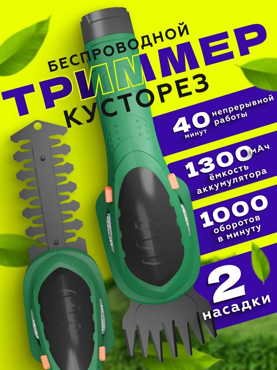 | Комплектация | Кусторез, 2 лезвия, адаптер для вилки, зарядный блок, инструкция на русском языке |