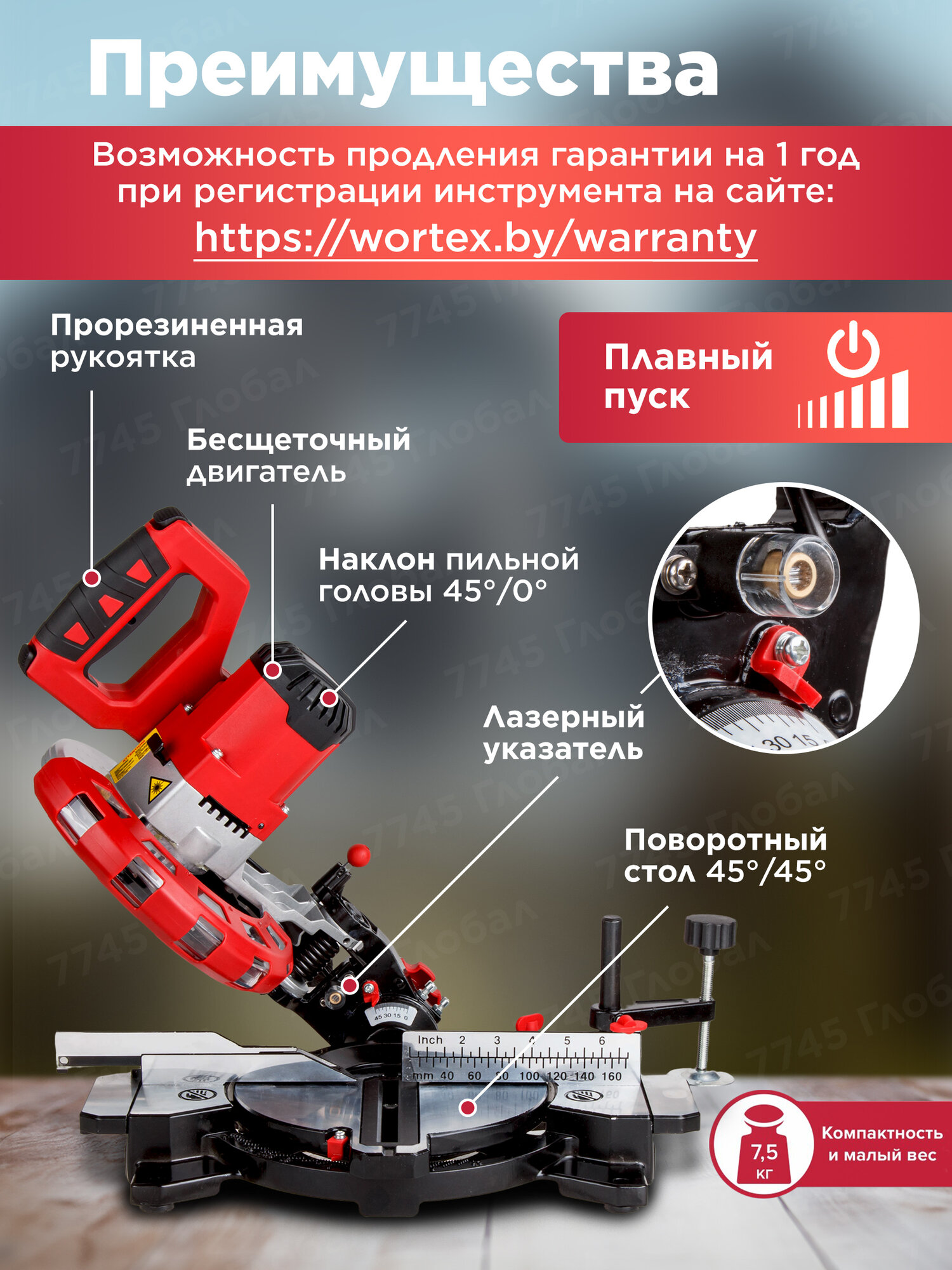 Аккумуляторная торцовочная пила без АКБ и ЗУ WORTEX СMS 2118 L (1329458) информация:
