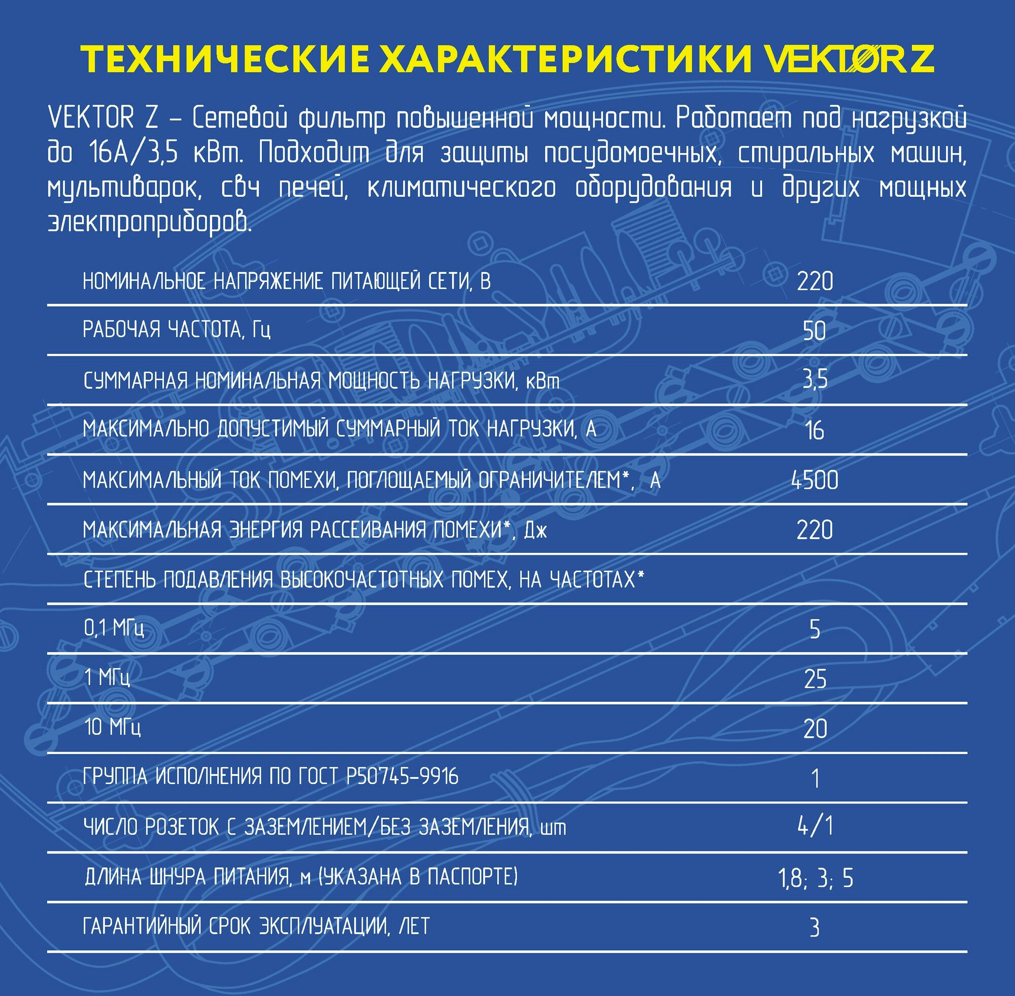 Сетевой фильтр Vektor Z 3.5 кВт белый 1.8м (для бытовой техники, повышенная мощность) информация: