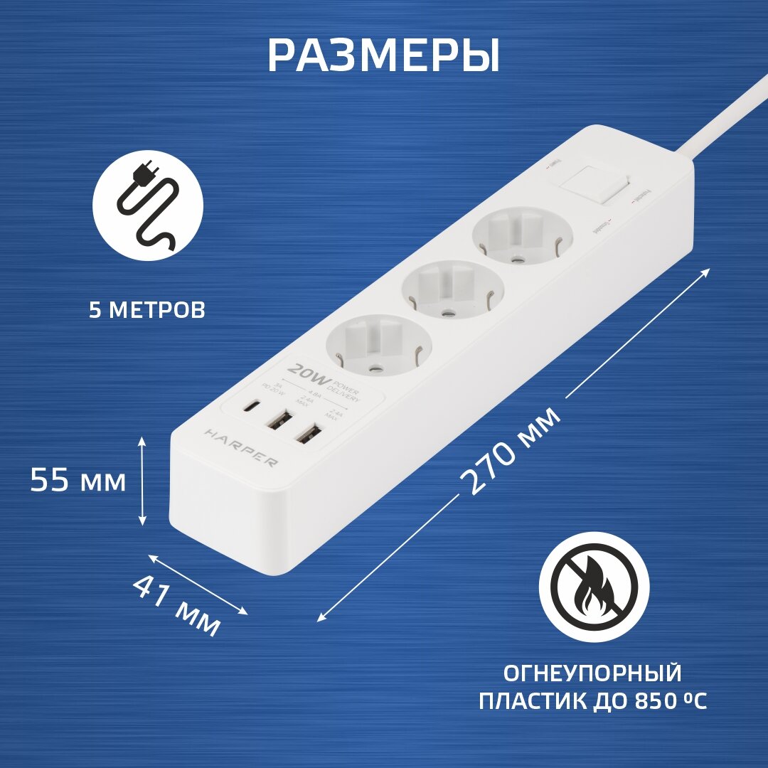 Отзывы на Сетевой фильтр с USB зарядкой HARPER UCH-440 PD3.0 / 3 розетки / 3 USB-порта, белый
