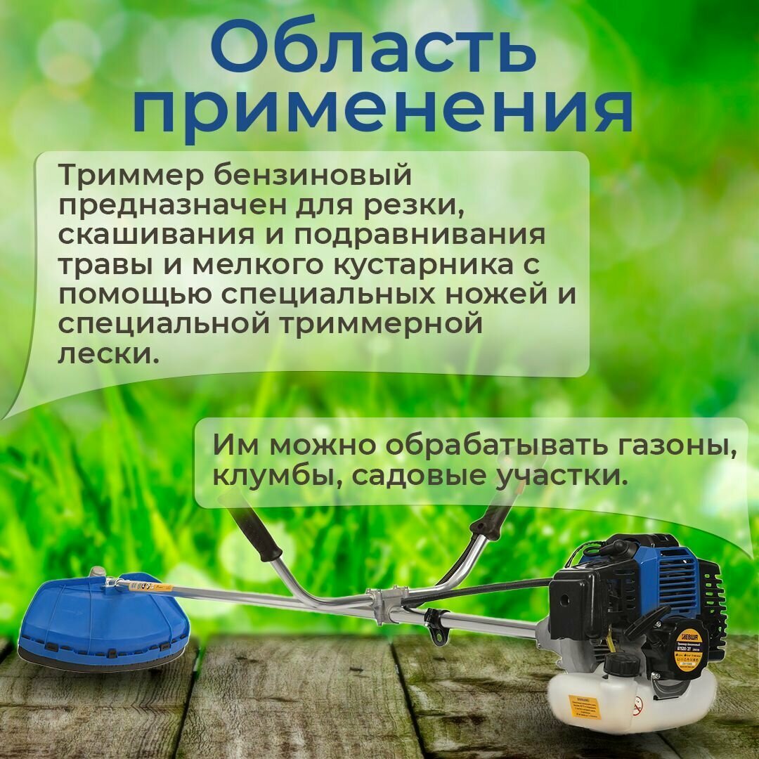 Бензотриммер Левша БТ520/2Т / объем двигателя 52 см3, 2.3 л. с, ширина скашивания 44 см, 8000 об/мин, леска+нож информация: