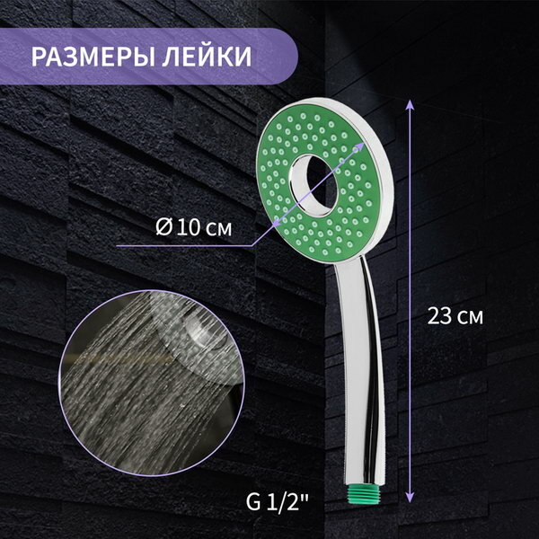Отзывы на Лейка для душа Z3537, d=105 мм, отверстие внутри, хром/зелёный