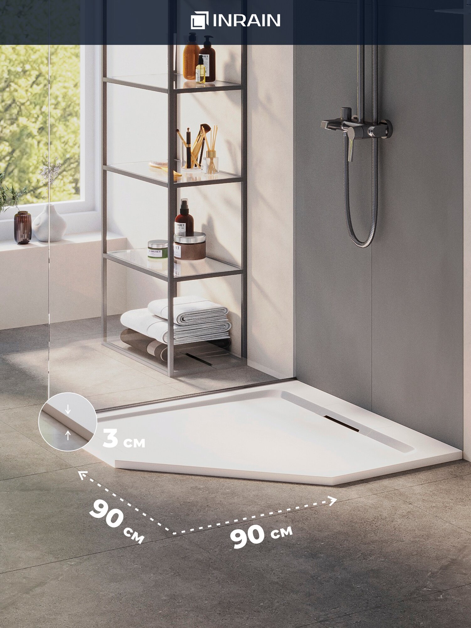 Отзывы на Премиальный поддон для душа INRAIN из искусственного камня трапеция A-61 90х90 Белый с накладкой на сифон