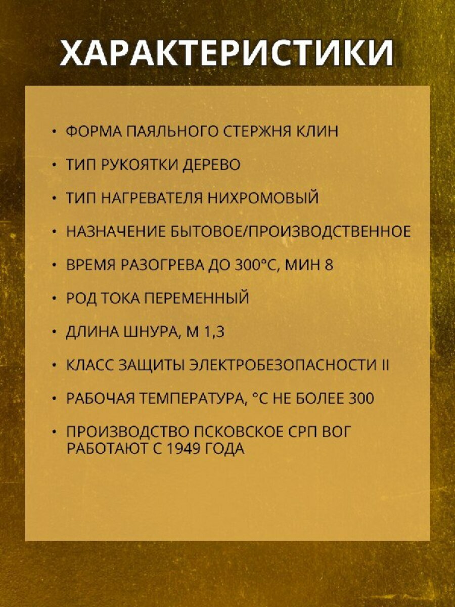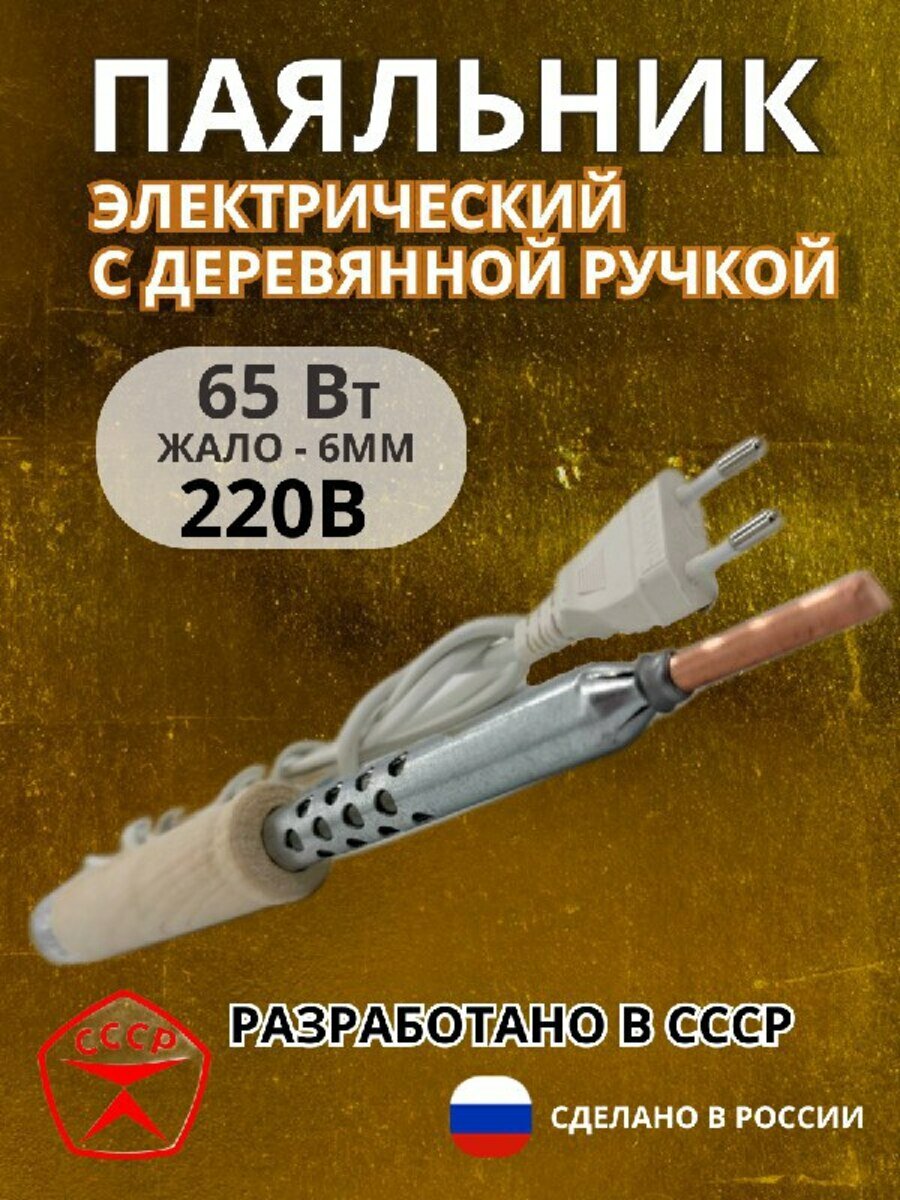 Паяльник электрический 65Вт/220В, деревянная ручка, медное жало (Псков) информация: