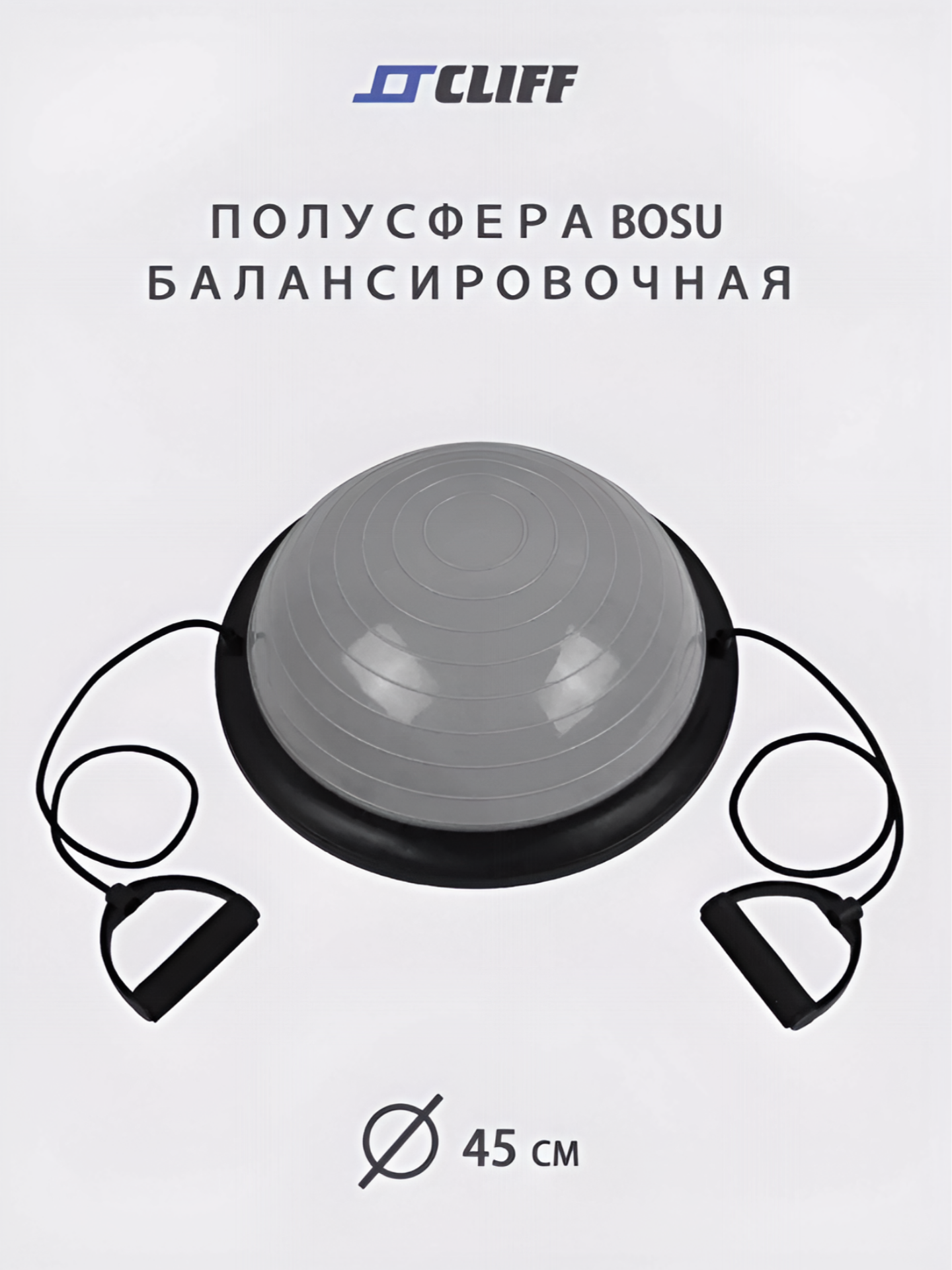 Отзывы на Полусфера балансировочная BOSU CLIFF 45*20см, серая, с эспандерами, Балансировочная платформа, Степ платформа, Мяч Босу.