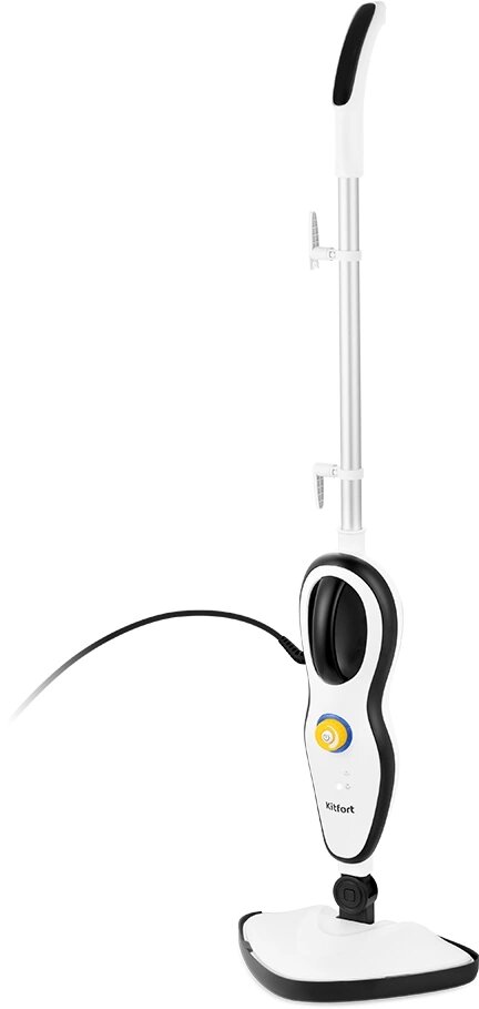 10 цен на Швабра паровая Kitfort КТ-1045 1500Вт белый/черный, Регулировка подачи пара, Фильтр от накипи, Место для хранения шнура