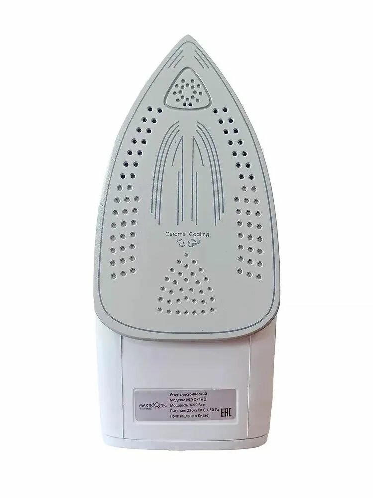 Утюг для одежды с отпаривателем для дома MAXTRONIC MAX-190, 1600 Вт, паровой удар, постоянный пар, керамика информация: