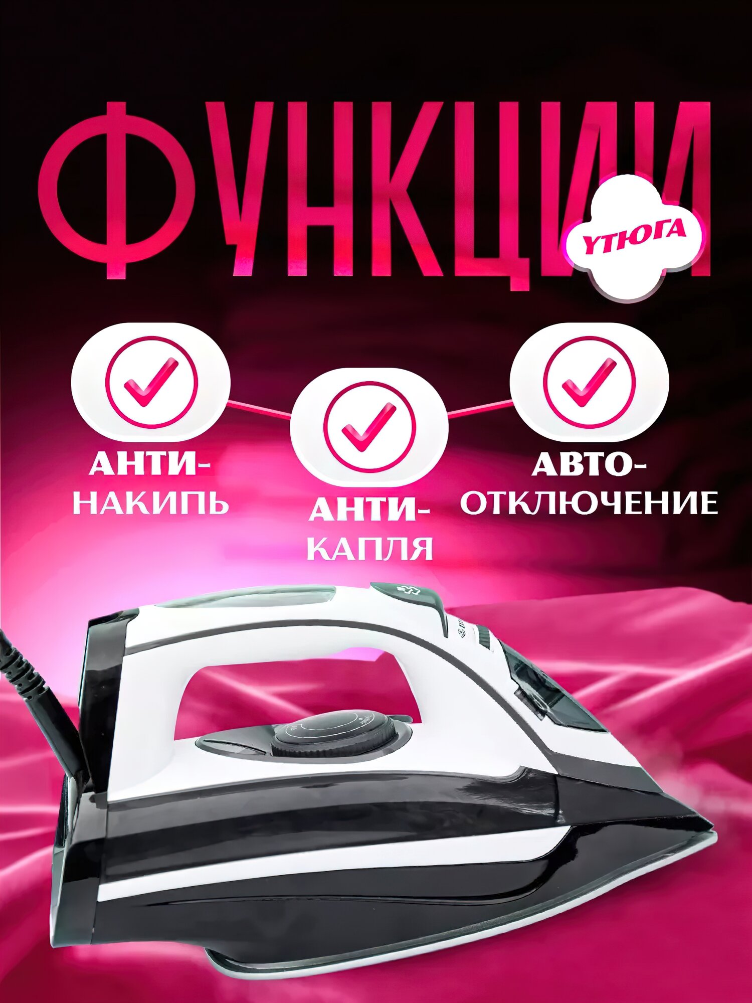 Утюг домашний, паровой утюг, керамика, 3000W, вертикальный пар, автоотключение, шаровое крепление информация: