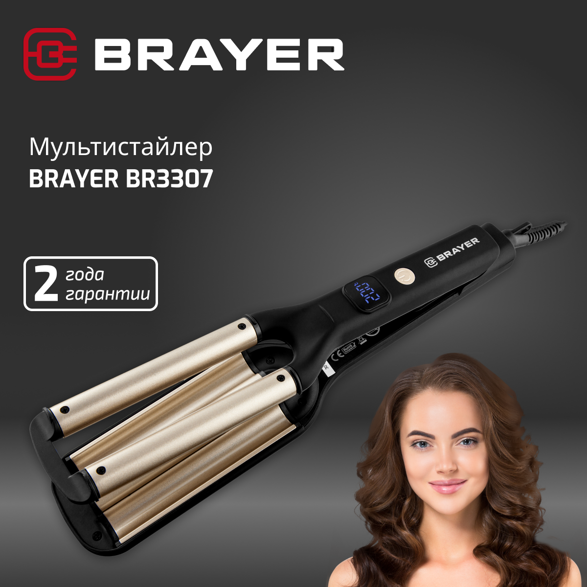 Отзывы на Мультистайлер, тройная плойка для волос BRAYER BR330, 200°C, автоотключение, черный/золотистый