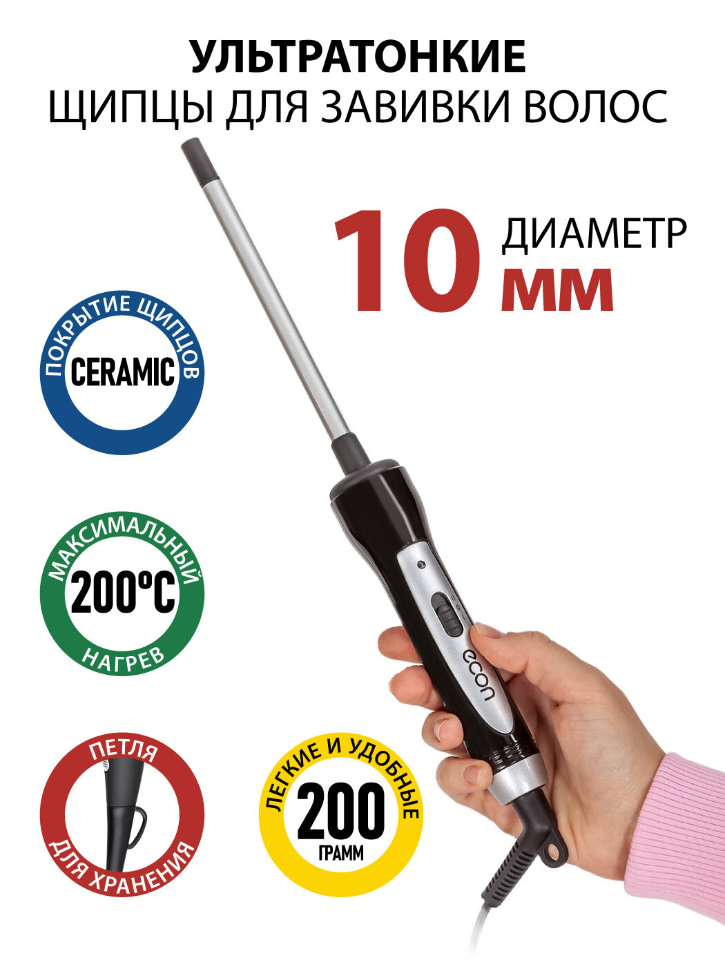 10 цен на Ультратонкие щипцы для завивки волос ECON ECO-BH111C с керамическим покрытием, диаметр 10 мм, 20 Вт