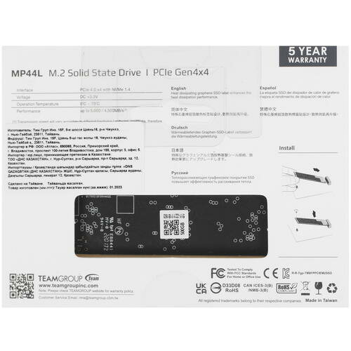 500 ГБ M.2 NVMe накопитель TEAMGROUP MP44L [TM8FPK500G0C101] информация: