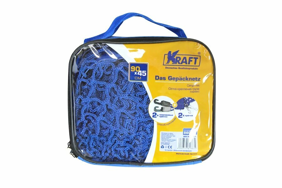 KRAFT KT 860501 Сетка багажная карман KRAFT 45х90см 2 пласт крючка + 2 металл крючка 860501 1 200 ₽