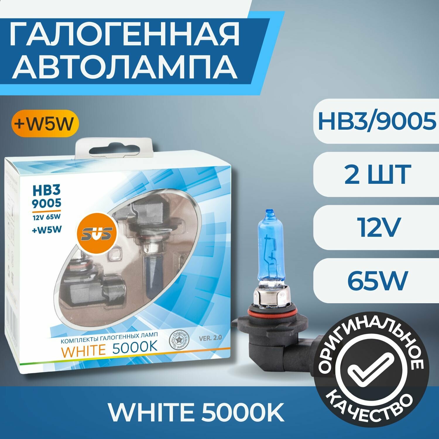 Галогенные лампы серия White 5000K 12V HB3/9005 65W+W5W White, комплект 2шт. Ver.2.0 {упаковка 1/6/60} SVS 0200110000 1 230 ₽