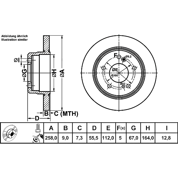 ATE 24-0109-0120-1 (2014230912 / 2014231112 / 2014231212) торм.диск зад.[258x9] 5 отв. (Комплект 2 штуки)