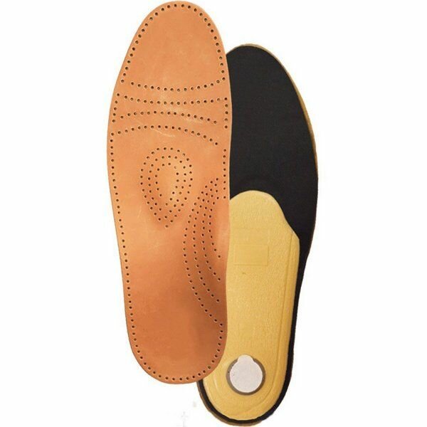 Ортопедические стельки из натуральной кожи с пяточным амортизатором, на жестко-упругом каркасе, при продольно-поперечном плоскостопии СТ-105, универсальные