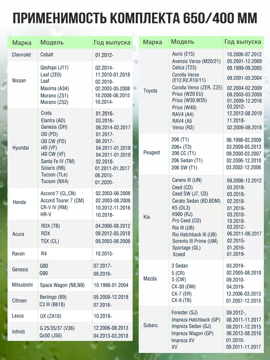 Щетки стеклоочистителя 650 400 FEEN, дворники гибридные для автомобиля Киа Рио / Хендай Солярис / Крета / Мазда CX-7 информация: