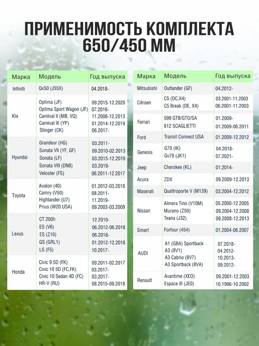 Щетки стеклоочистителя 650 450 FEEN, дворники гибридные для автомобиля Тойота Камри / Мицубиси Аутлендер / Kia Optima информация: