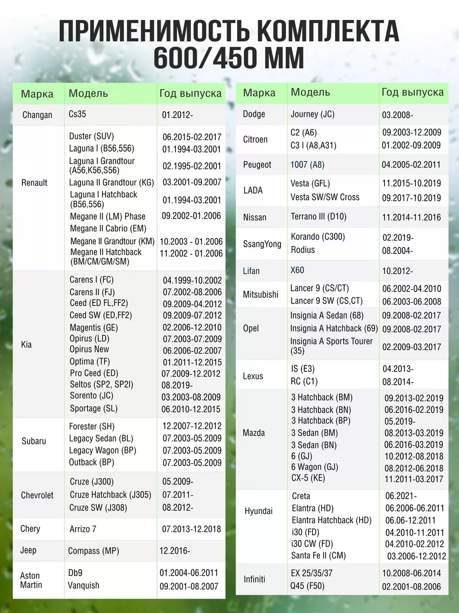 Щетки стеклоочистителя 600 450 FEEN, дворники гибридные для автомобиля Лада Веста / Шевроле Круз / Киа Спортаж информация: