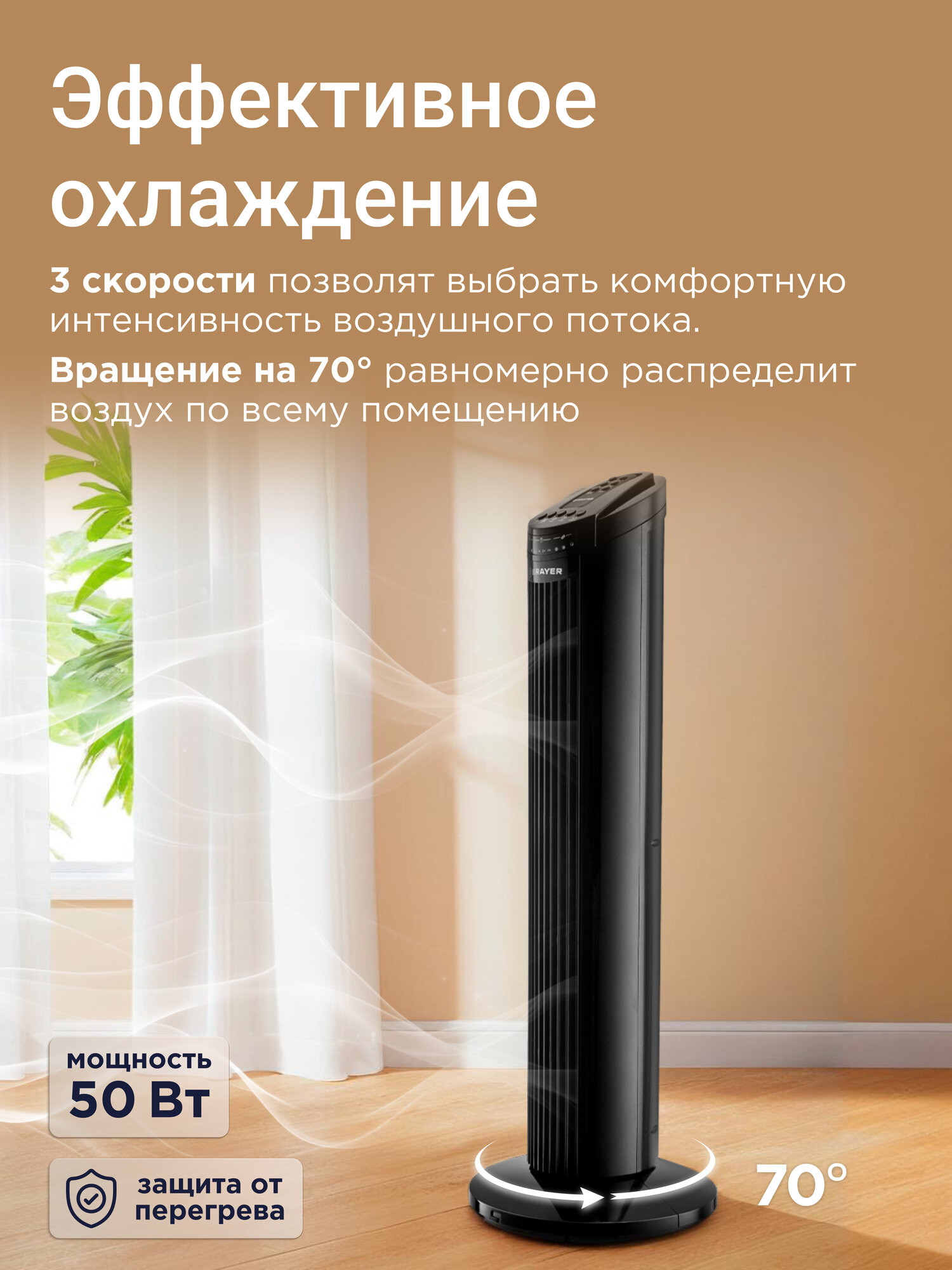 10 цен на Вентилятор колонный BRAYER BR4958BK 50Вт, пульт, таймер, дисплей