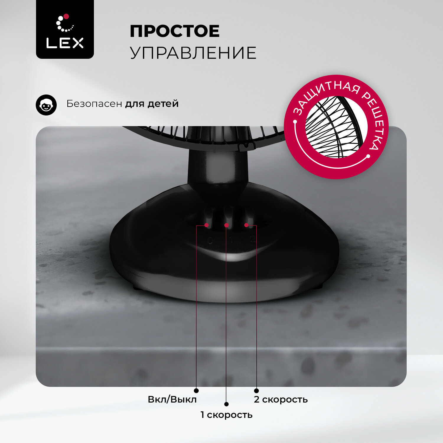 Вентилятор настольный LEX LXFC 8379, диаметр лопастей 23 см, мощность 30Вт, 2 скорости. информация: