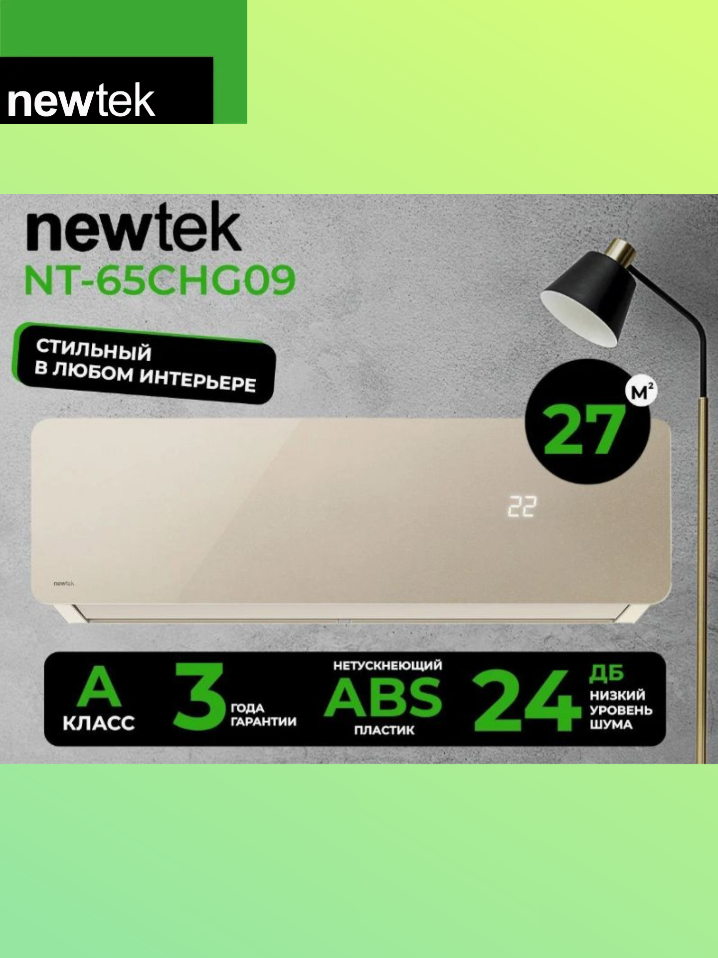 Сплит-система Newtek NT-65CHG09 скрытый LED, Golden Fin, компрессор GMCC (27 кв. м) ABS-пластик Русифицированный ПДУ информация: