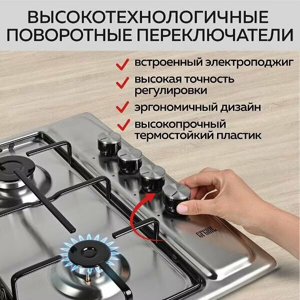 Отзывы на Варочная панель газовая встраиваемая GFGRIL GF-HBG104IN, 60 см, FFD, автоподжиг, нержавейка