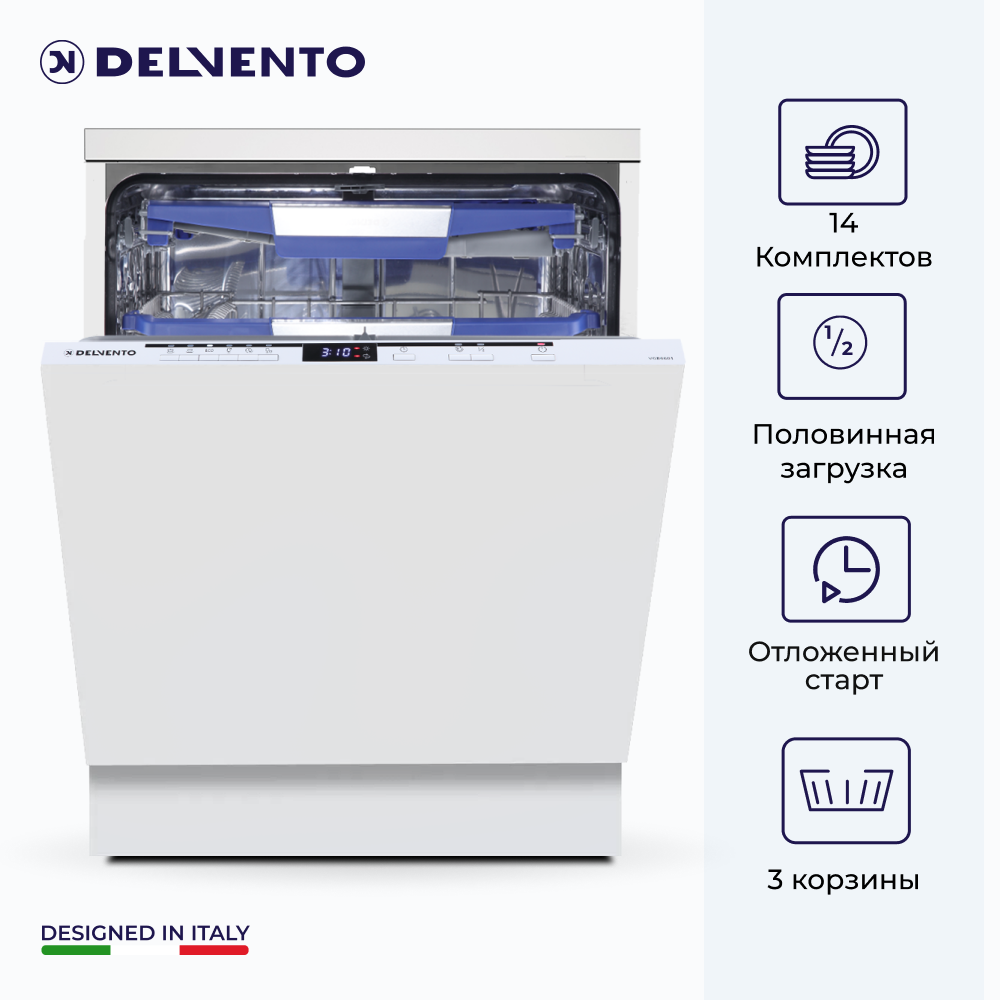 Посудомоечная машина встраиваемая 60 см DELVENTO VGB6600 / 6 программ / 14 комплектов / белый / 2 корзины загрузки / половинная загрузка / подсветка / отложенный старт / блокировка от детей / защита от протечек / 3 года гарантии 29 990 ₽