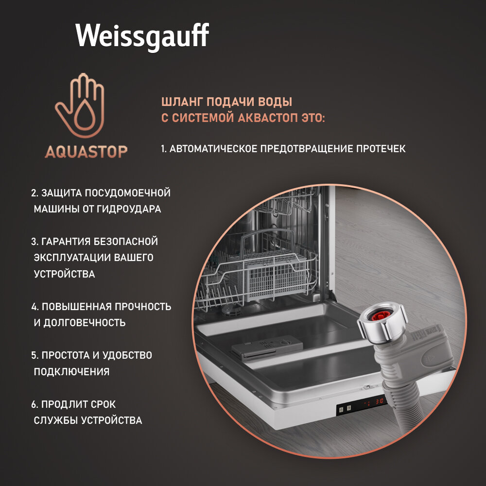 Посудомоечная машина встраиваемая Weissgauff BDW 4533, Wi-Fi Inverter Autoopen