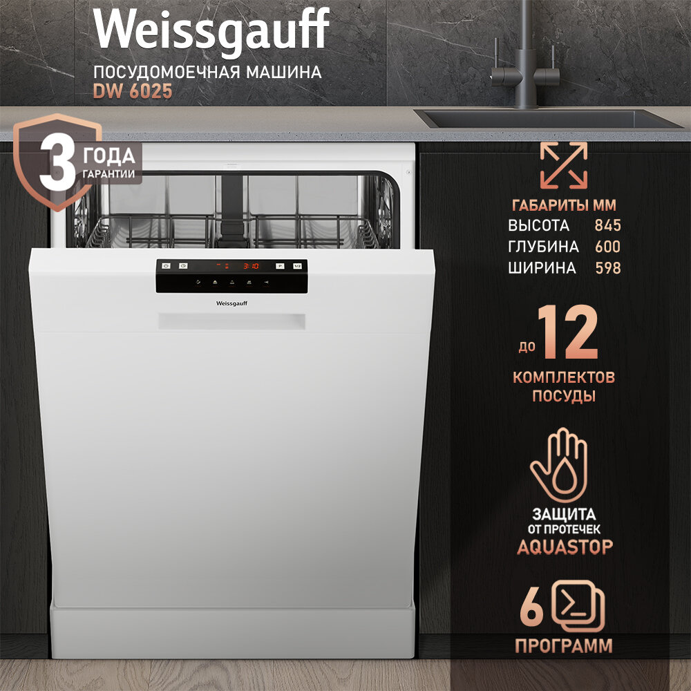 10 цен на Посудомоечная машина Weissgauff DW 6025, дозагрузка посуды, таймер отсрочки запуска, А++