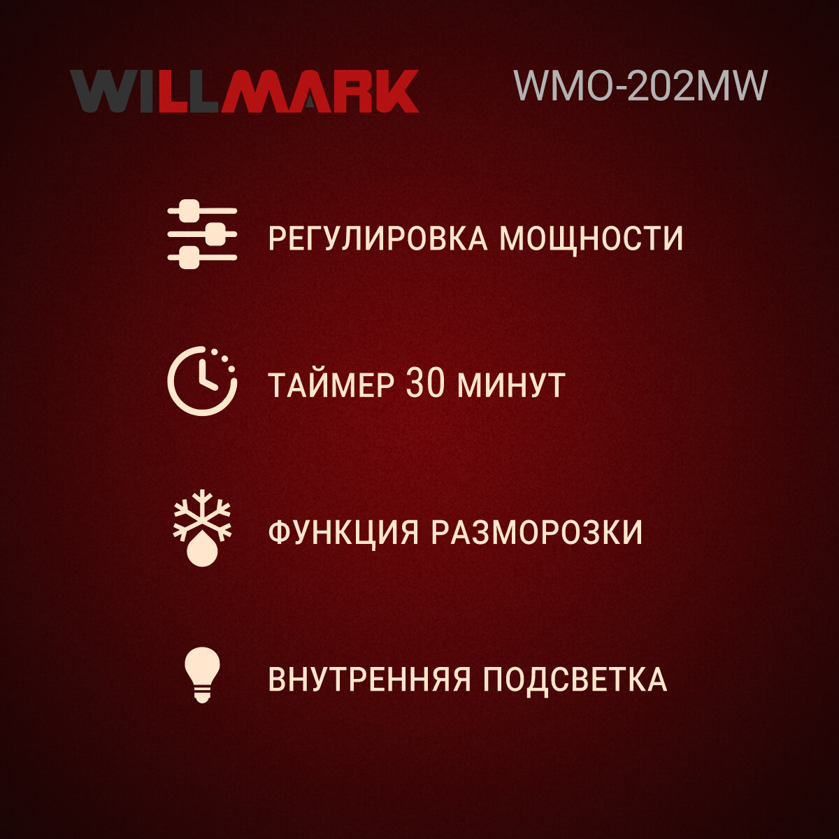 Микроволновая печь Willmark WMO-206SG, сенсорные переключатели, блокировка от детей