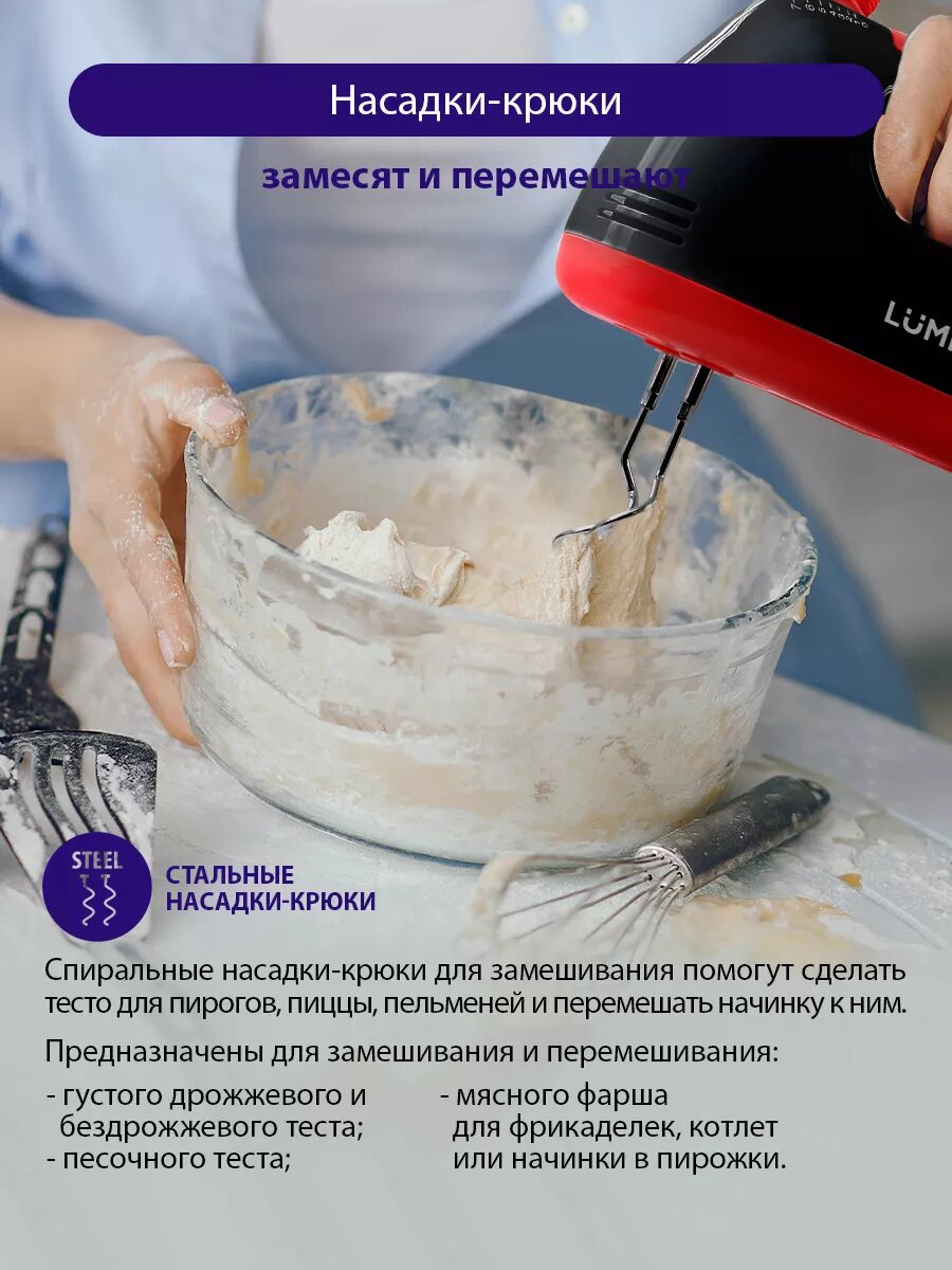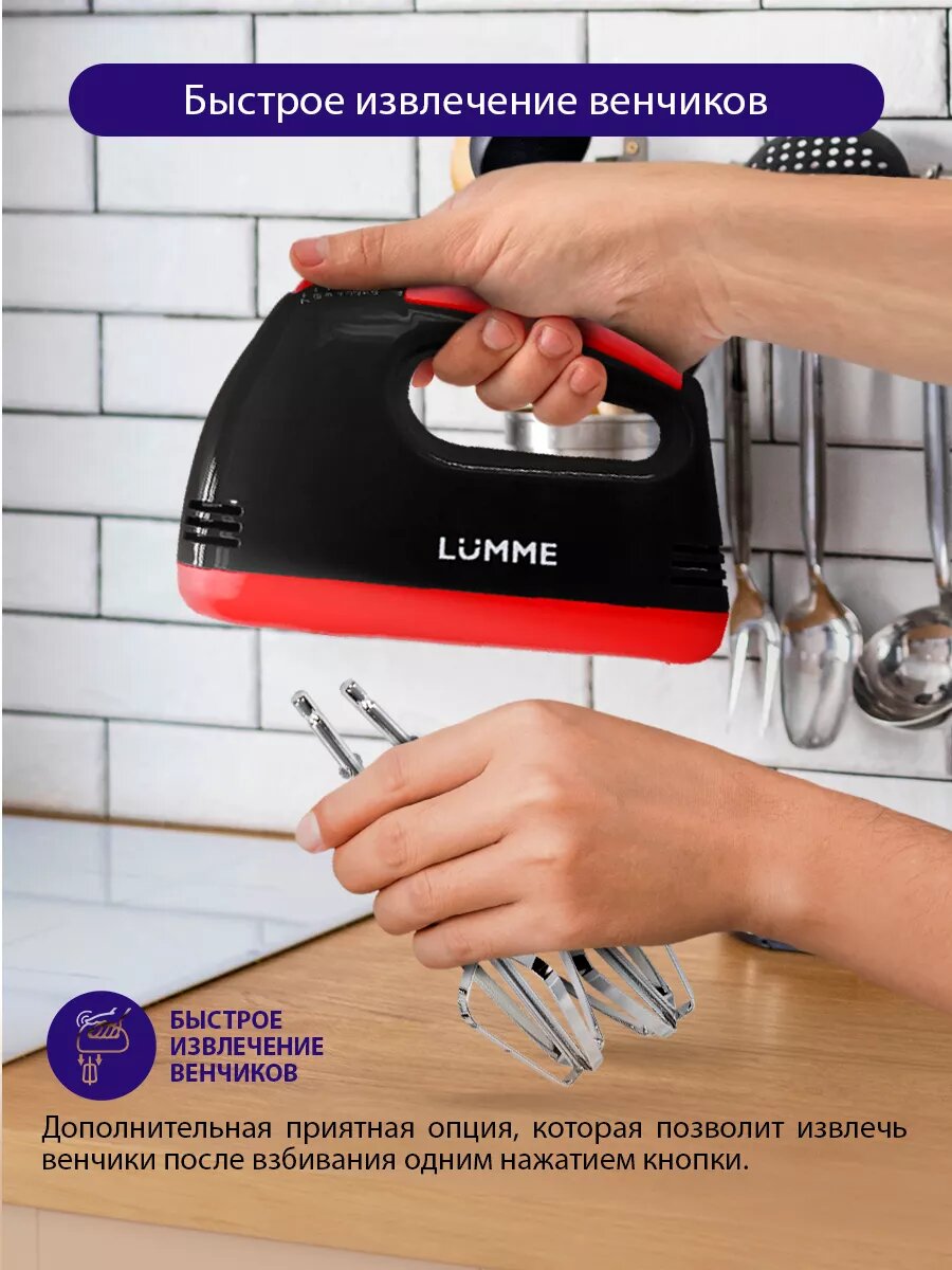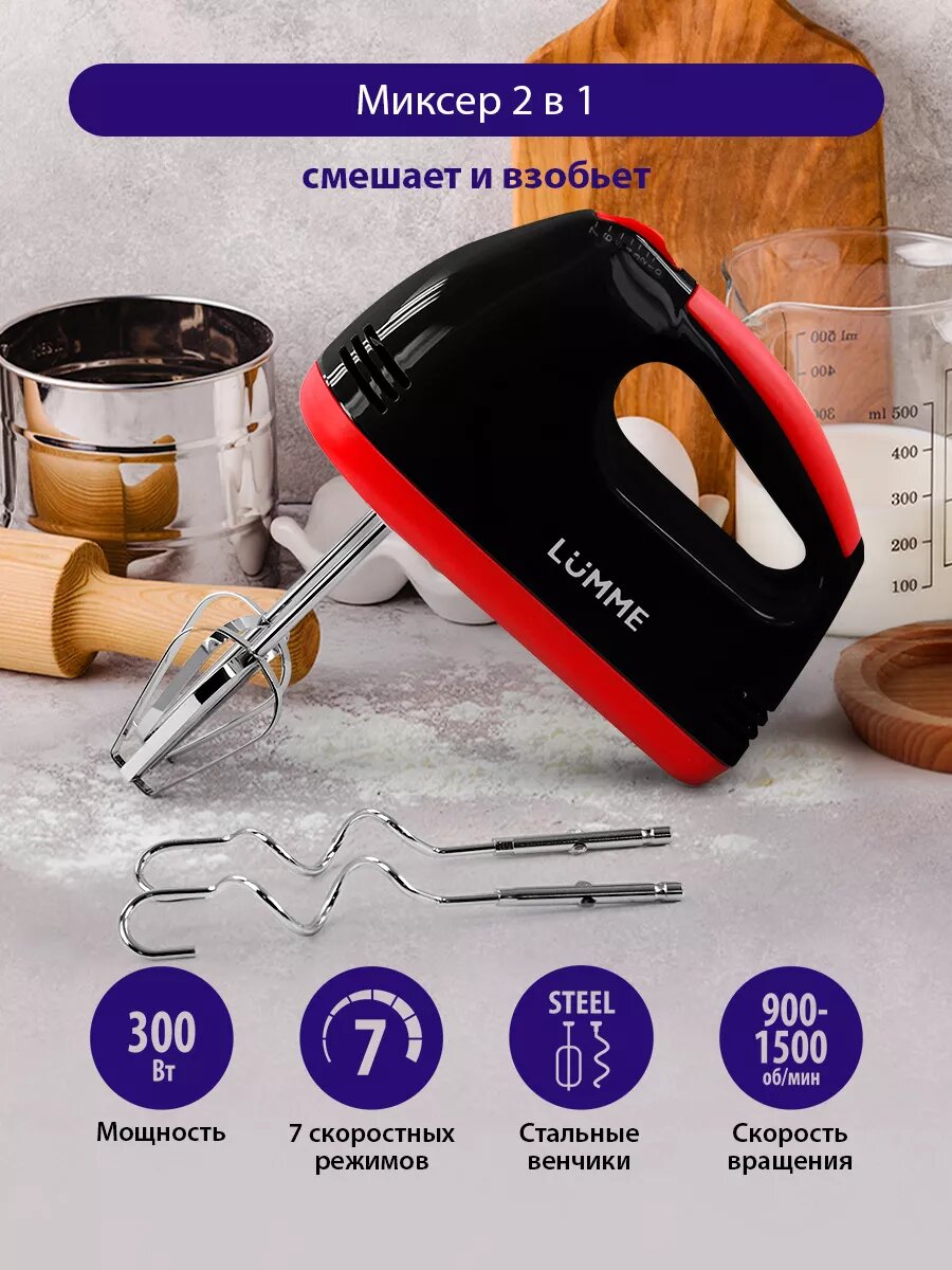 10 цен на Миксер ручной LUMME LU-MX1874A, мощность 300Вт, 7 скоростей, кнопки извлечения насадок