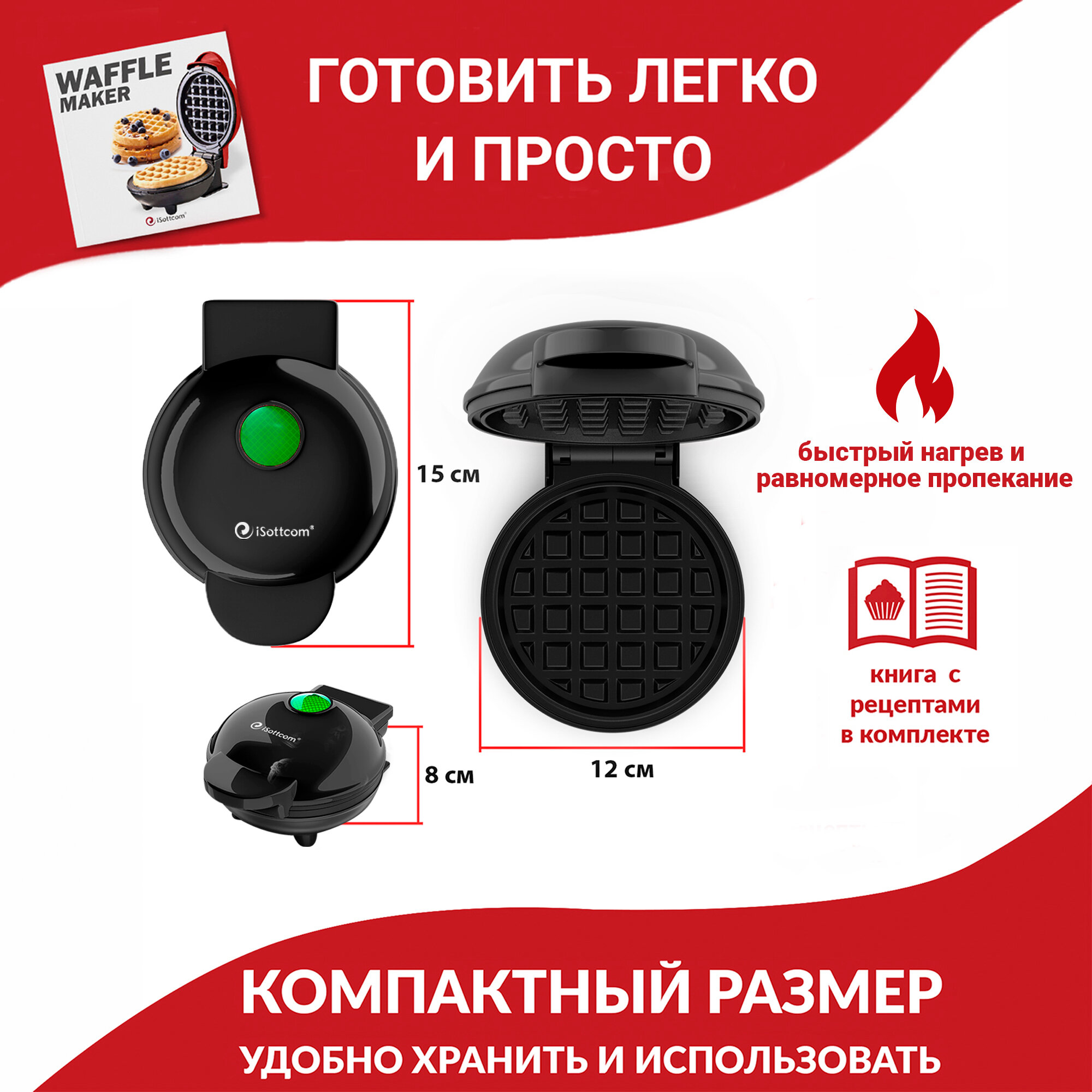 10 цен на Вафельница iSottcom, 350Вт, с книгой рецептов
