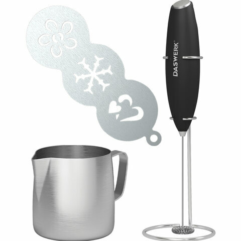 Капучинатор электрический, вспениватель молока для дома и кухни с подставкой, питчером, трафаретами 4 в 1, черный, Daswerk, 456181 1 267 ₽