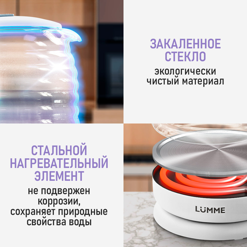 10 цен на Электрический чайник LUMME LU-4102 белый жемчуг стеклянный с подсветкой 2 л