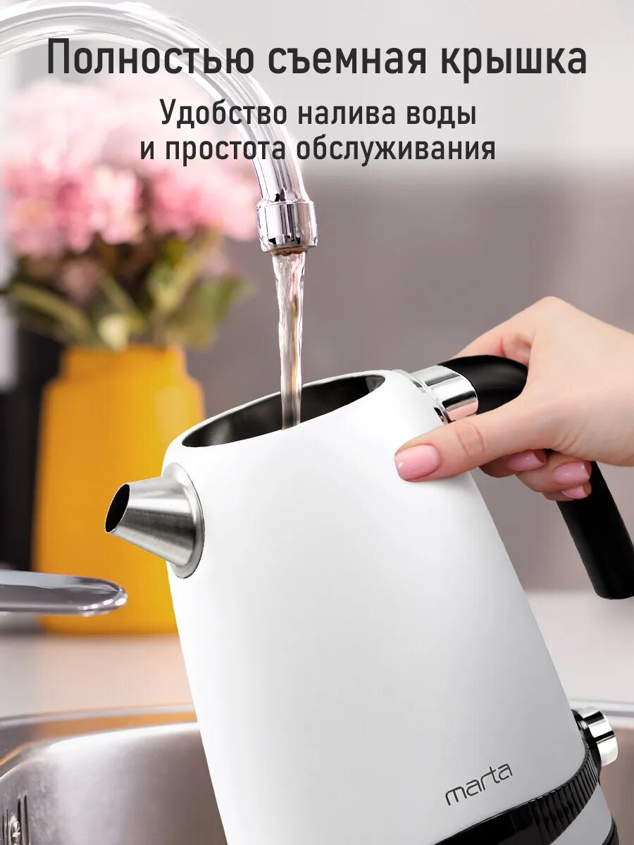 10 цен на Электрический чайник MARTA MT-4628 белый металлический с контролем температур, умный 1.8 л