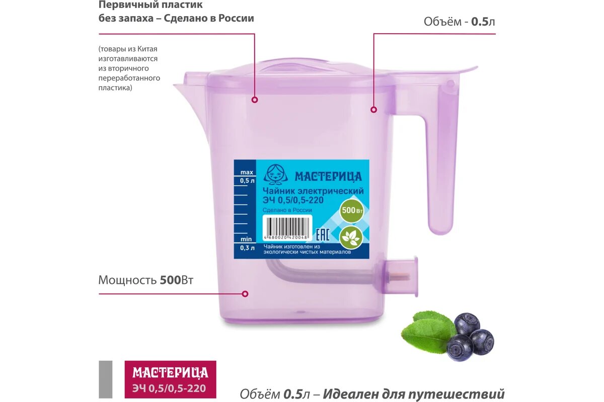 Отзывы на Мастерица Чайник электрический эч 0,5/0,5-220 0,5л, пластик, сиреневый прозрачный ЭЧ 0,5/0,5-220 сиреневый прозрачный