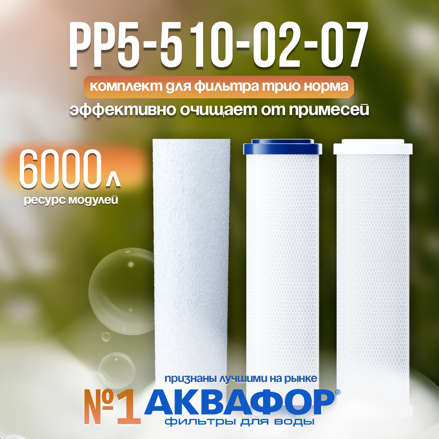 Комплект сменных модулей для Аквафор Трио Норма РР5-В510-02-07, 10" SL, ресурс 6000 литров информация: