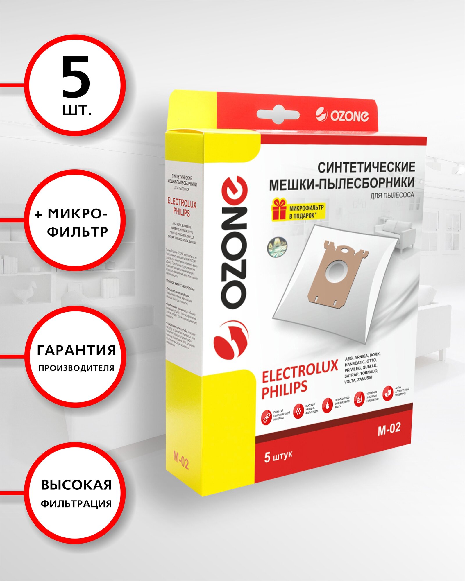 Мешки для пылесосов ELECTROLUX (Электролюкс) - 5 шт, AEG, PHILIPS, TORNADO, VOLTA, ZANUSSI, 5л + микрофильтр, арт. M-02 информация: