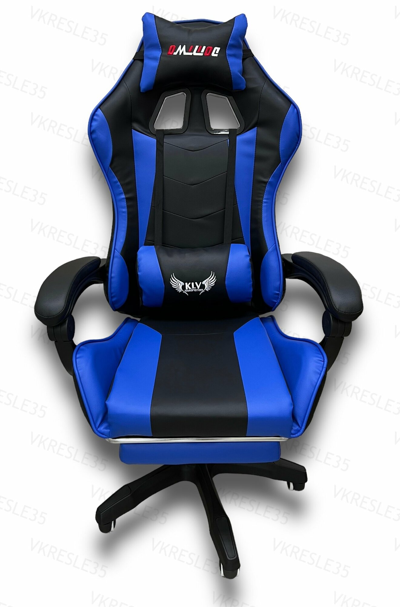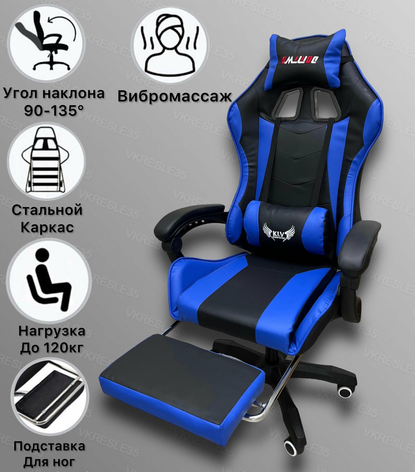 Игровое Компьютерное Кресло, с Вибромассажем, цвет Синий-Черный с подставкой для ног информация:
