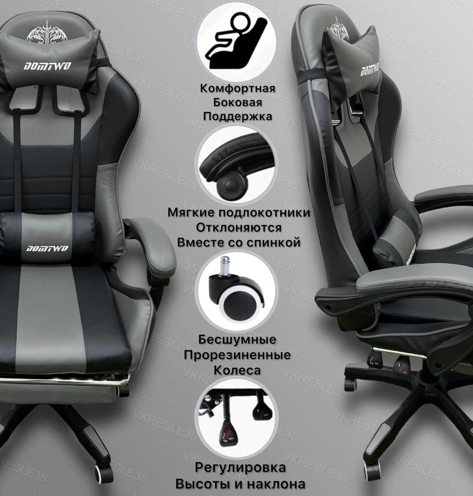 Игровое Компьютерное Кресло, с Вибромассажем, цвет Черно-Серый информация: