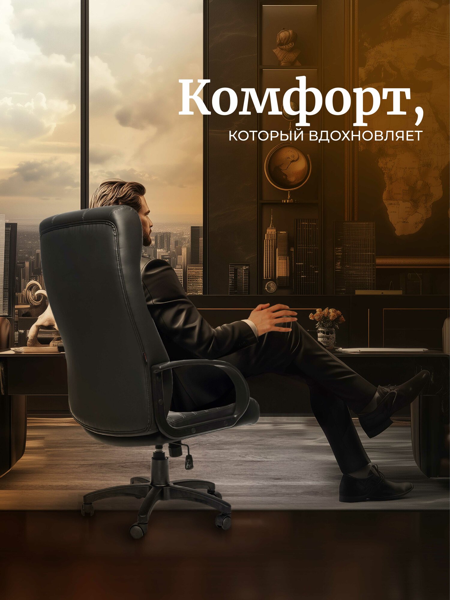 Кресло компьютерное РОСКРЕСЛА Атлант-1 офисное для руководителя, обивка: экокожа, черный информация: