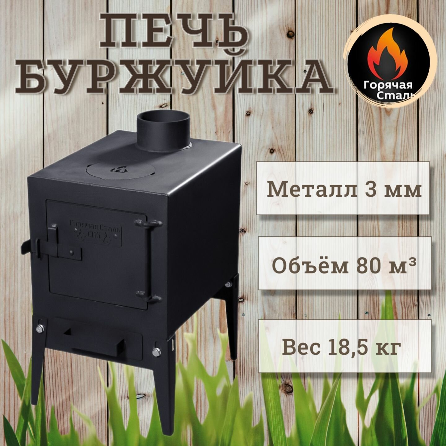 Печь буржуйка для гаража, дачи, палатки, гаража, отопительная, с зольником, сталь 3 мм. Горячая Сталь информация: