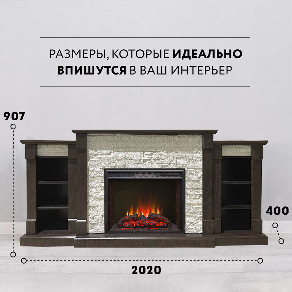 Электрокамин FlameKamin Моника Lux NT M1 с очагом Sparta 25,5 LED (камин электрический с тумбами и полками)